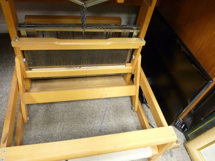 Harris weaver's loom and a small Samsung flatscreen TV with remote control E/T