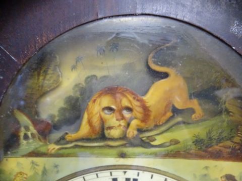 Mid to Late 19th Century mahogany longcase clock (case for restoration and having an arched hood with painted dial, eight day movement with rolling lion's eyes, maker William Edwards, Caernarfon