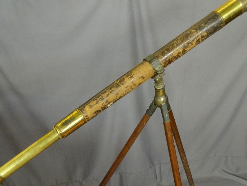 Antique brass and leather two draw telescope on a tripod base by W Gregory of The Strand, London