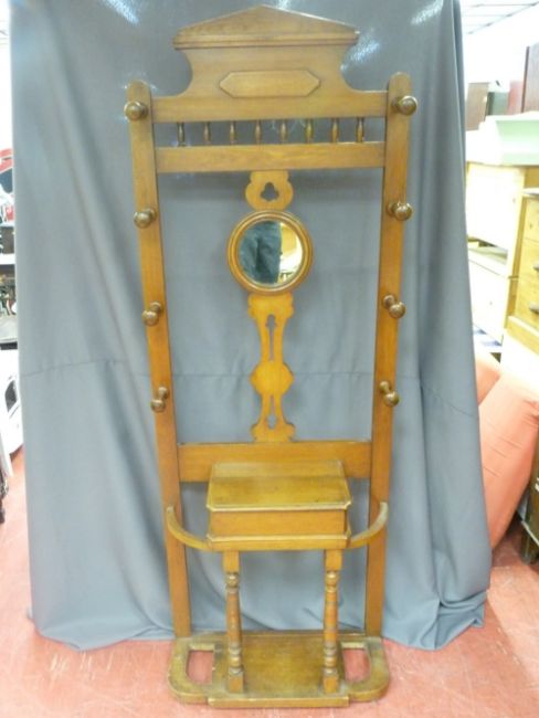 Edwardian mahogany mirrored hallstand with turned wooden coat hooks and lidded glove box, 210 cms high, 76 cms wide, 20 cms deep