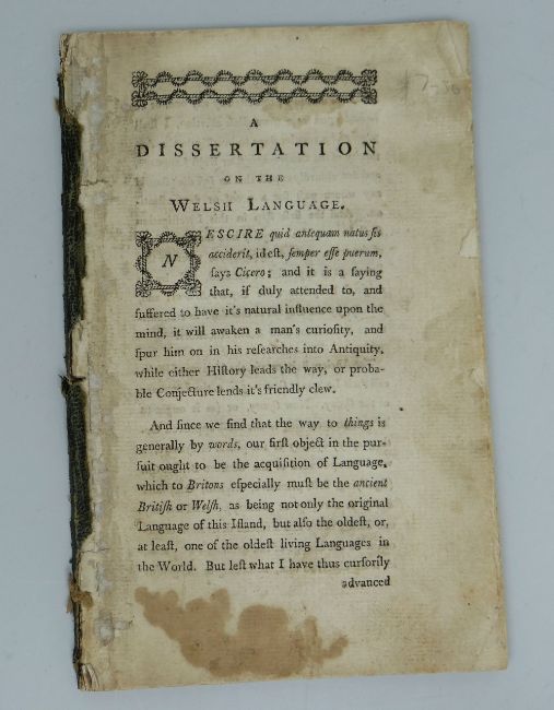 JOHN WALTERS (1770) small printed unbound pamphlet - in praise of the Welsh language entitled 'A Dissertation on the Welsh Language'