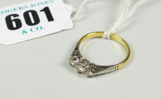 18 CARAT YELLOW GOLD THREE STONE DIAMOND RING 2.2 grams approx.