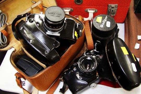 MIRANDA VINTAGE CAMERA AND LIGHTMETER BY WESTON, two accessory lenses and flash ETC