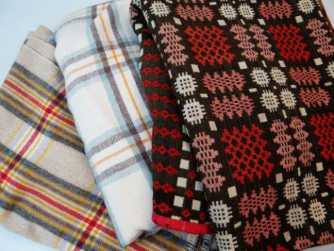 A PARCEL OF BLANKETS including a Welsh blanket bearing the label 'for Curlew Weavers of Cardiganshire'