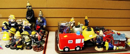 AN ASSORTMENT OF FIREFIGHTER ORNAMENTS INCLUDING Meercats, Beswick figure, novelty teapot and money box ETC