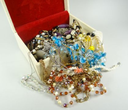 JEWELLERY BOX OF ASSORTED COSTUME JEWELLERY, dress jewellery, beads, necklaces, pearls, ETC