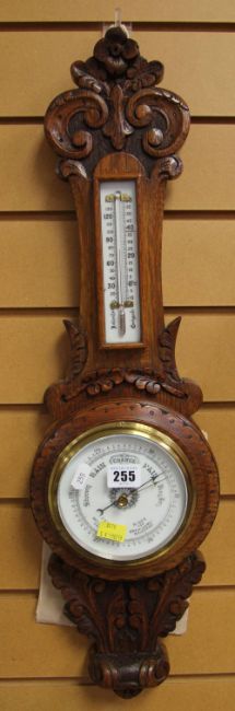 A VINTAGE CARVED BANJO ANEROID BAROMETER