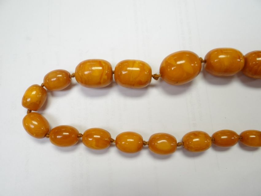 GRADUATED STRING OF AMBER BEADS, 75cms long approx. 73 grams approx.