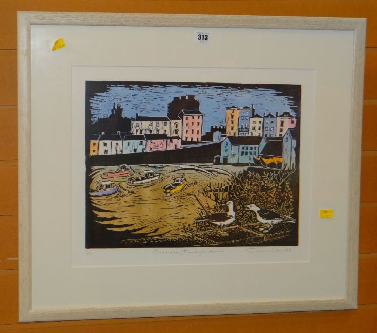 SUSAN SANDS limited edition (3/9) colour etching - entitled 'Gull Talk, Tenby Harbour', 37 x 45cms (mounted and framed)
