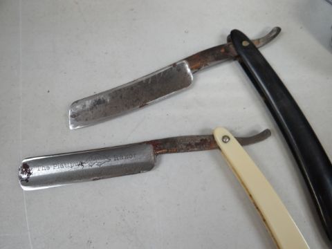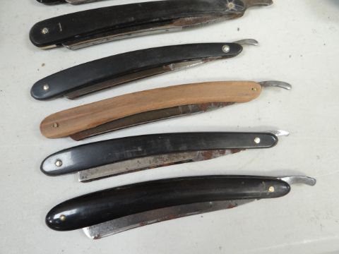 A RETRO TEAS-MAID, case of cut-throat razors, cameras, bowler hat ETCThe case is pretty worn and has a broken closing strap. The size is 27 x 10 x 6cms.There are nine razors in total, they all have rust on the blades.They are all between 10cms and 16cms in length when closed.