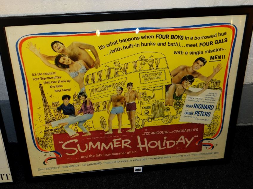 AN ORIGINAL 1963 CINEMA POSTER FOR SUMMER HOLIDAY starring Cliff Richard and Laurie Peters, 60 x 73cms including frame