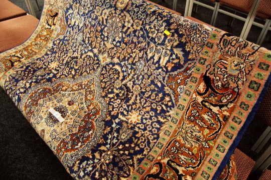 A GOOD PERSIAN CARPET from the Poshtkohi region in rich brown and blue geometric design 244 x 143cms
