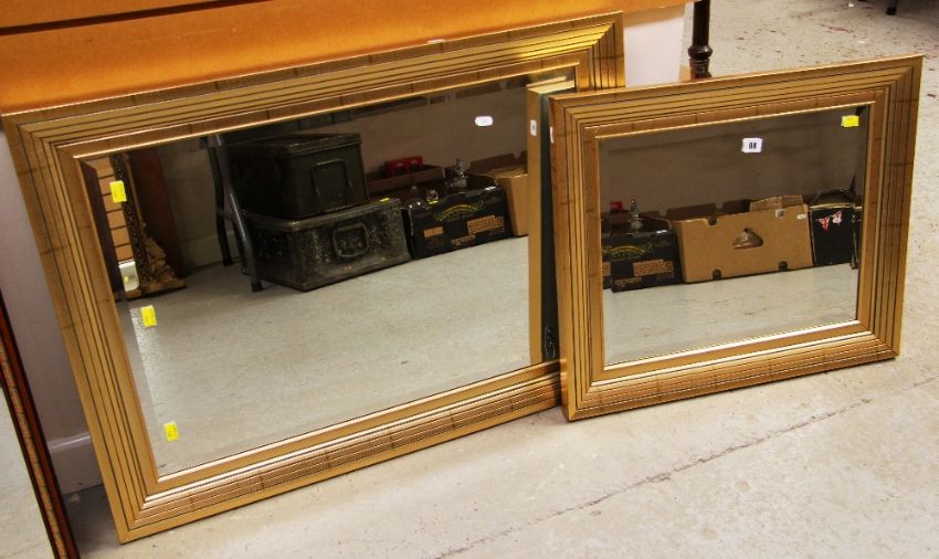 A PAIR OF MODERN GILT-FRAMED WALL MIRRORS