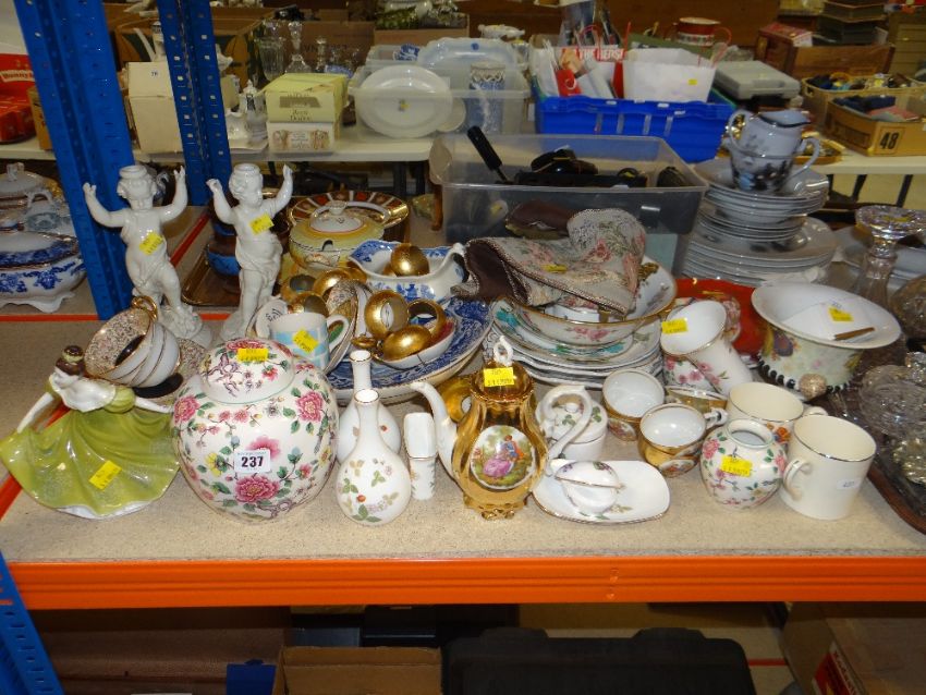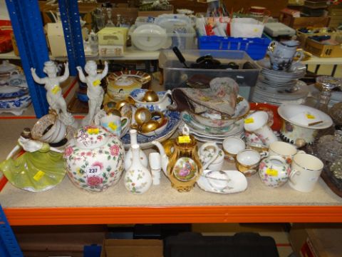 QUANTITY OF MIXED CHINA including English tableware, pair of cherubic candlestick holders ETC