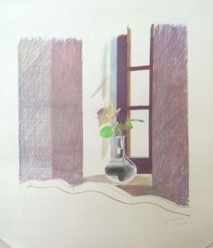 DAVID HOCKNEY RA John Brandler print - entitled 'Called rose in a window', unframed, 61 x 46cms (with certificates)