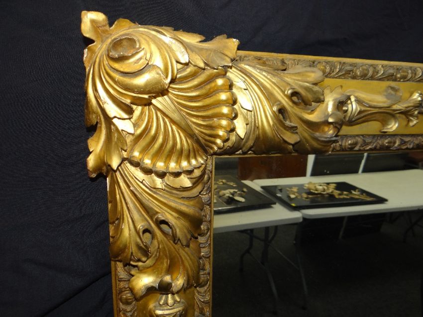 IMPRESSIVE EARLY 19TH CENTURY GILT FRAMED OVER MANTEL MIRROR bearing label verso for 'Coopers Manufactory for plate glass, carving and gilding, Number 36 Piccadilly London', 151cms wide x 157cms high