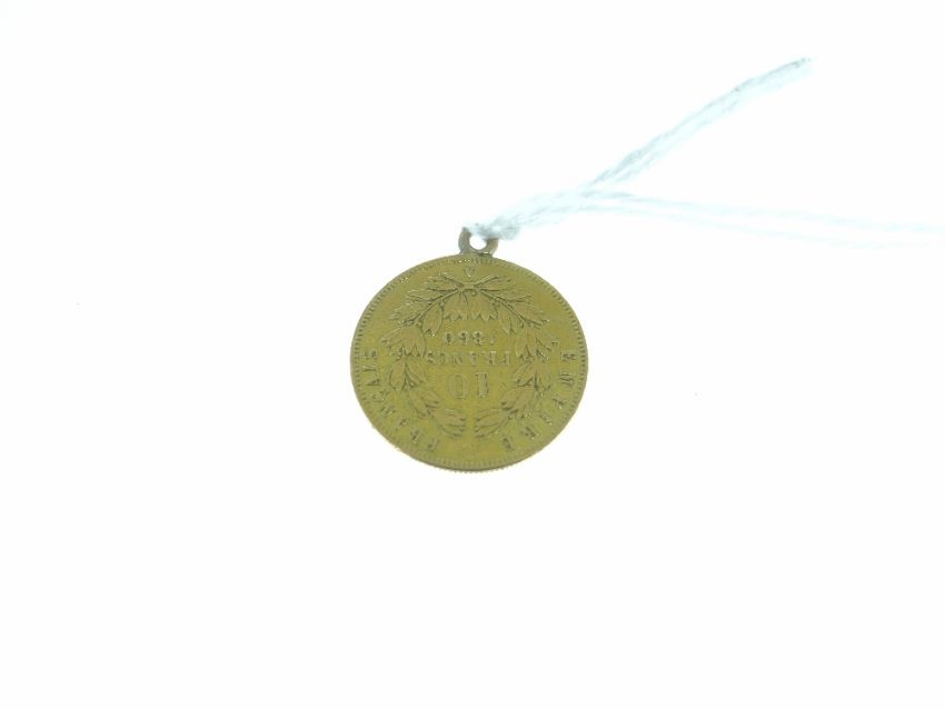 NAPOLEON III GOLD 10 FRANC COIN attached with pendant with loop for use as pendant, 3.3gms total