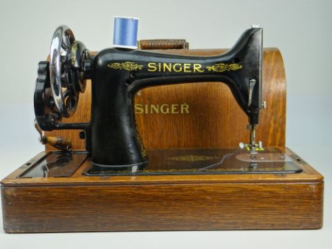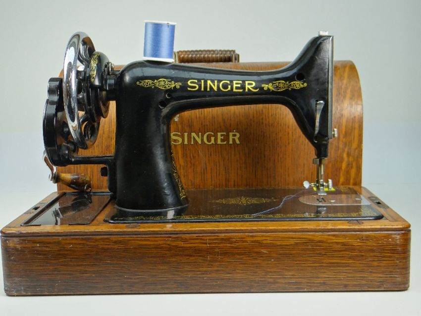 GOOD VINTAGE SINGER SIMANCO SEWING MACHINE number 94027 with polished domed case with ribbed handle, lovely fresh condition