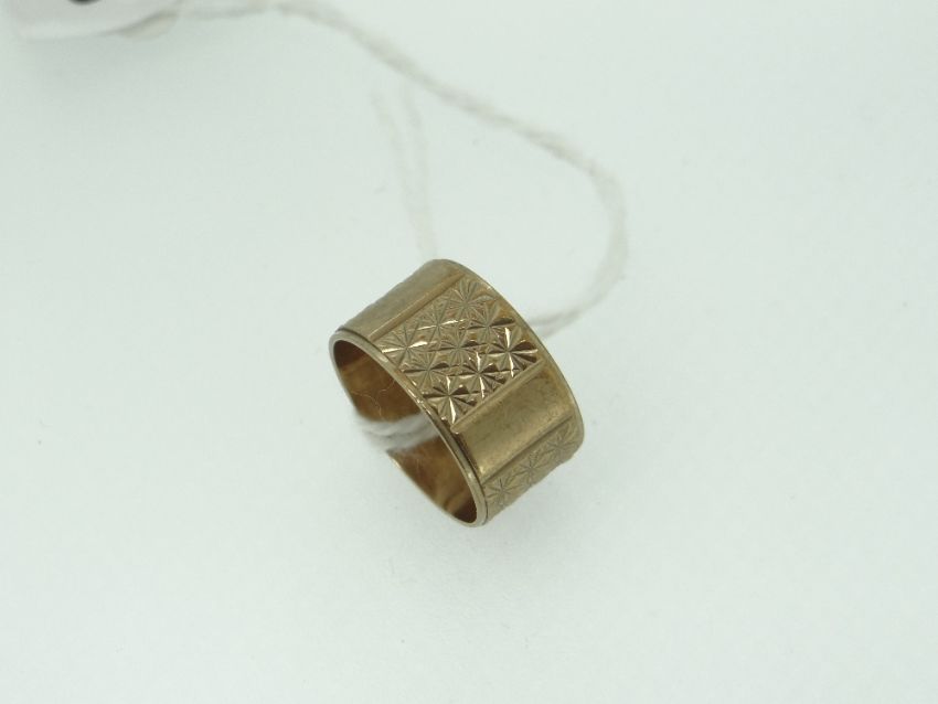 9CT YELLOW GOLD BAND RING, 4.3gms