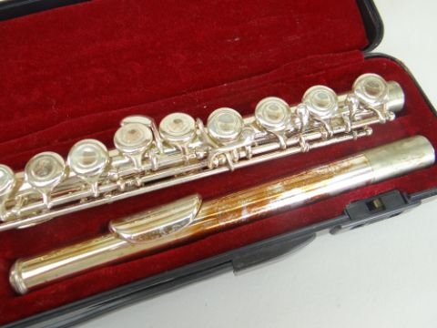 CASED KINGS THREE-PIECE FLUTE, together with a Hohner 'Trumpet Call' boxed harmonica