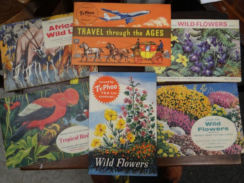 BOX OF VARIOUS TEA COLLECTORS CARDS loose and albums