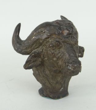 WILLIAM TIMYN MBE (1903-1990) LIMITED EDITION BRONZE OF A BUFFALO HEAD signed, 8.5cms high