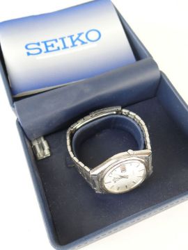 CASED VINTAGE SEIKO GENTLEMAN'S WRISTWATCH in stainless steel, with circular silvered dial and date aperture