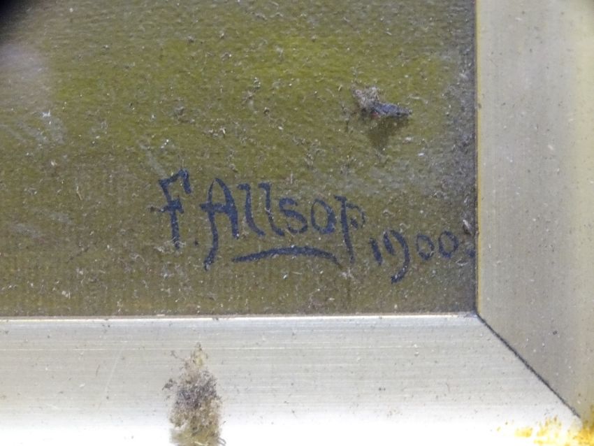 F ALLSOP 1900 oil on canvas - steeplechase in full swing, signed, 24 x 49cms
