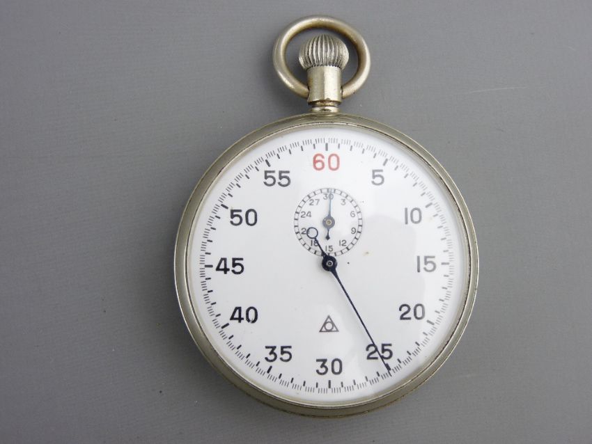 A GERMAN MILITARY ISSUE NICKLE CASED STOP WATCH the case back stamped with third Reich emblem above the letter M, numbered 691N/G and a cased modern Lotus Royale pearl strap lady's watch with mother of pearl dial