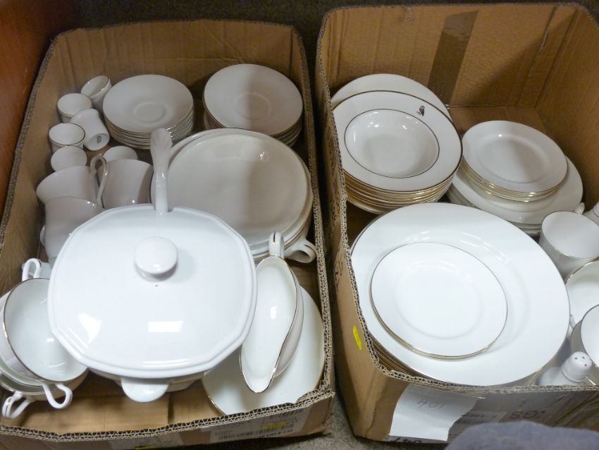 A MODERN PART TEA & DINNER SERVICE, bone china with white with gilt line decoration