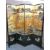 A VINTAGE JAPANESE FOUR-FOLD DRESSING SCREEN, typical colourful decoration relief with a gilt background, the rear side decorated with flowers and bamboo in relief, 108.5cms height x 41cms per panel