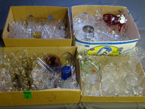 A LARGE COLLECTION OF HEAVY GLASSWARE AND DRINKING GLASSES