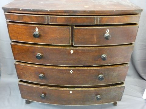MAHOGANY BOW FRONT CHEST OF DRAWERS, 123cms height, 119cms width, 55cms depth