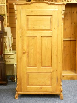 ANTIQUE PINE SINGLE DOOR CUPBOARD with interior shelves and central drawer, 160cms height, 98cms width, 50cms depth