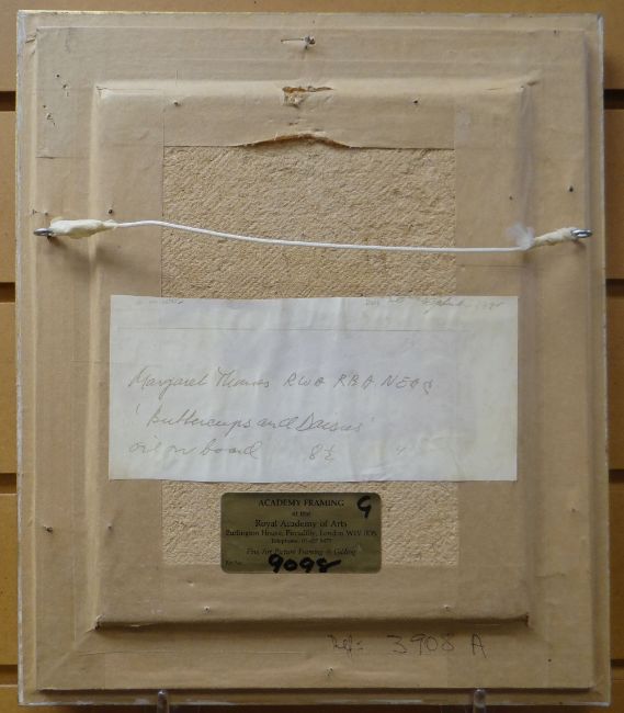 MARGARET THOMAS (British 1916-2016) oil on canvas - still-life flowers in a vase, entitled verso 'Buttercups and Daisies', signed, 25 x 19cms