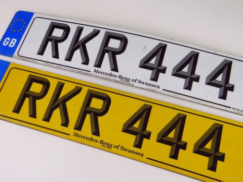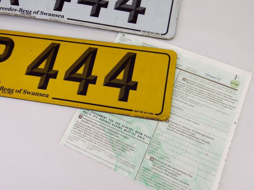 PAIR OF PERSONALISED CAR REGISTRATION PLATES, RKR 444, with retention certificate