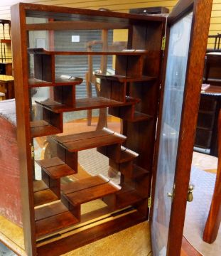 MODERN ORIENTAL HARDWOOD MIRROR BACKED WALL HANGING DISPLAY CABINET, 71 x 46cms