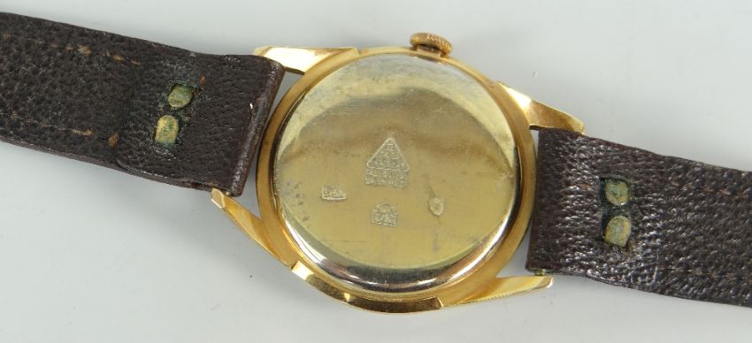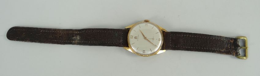 18CT GOLD OMEGA GENTS WRISTWATCH on later leather strap
