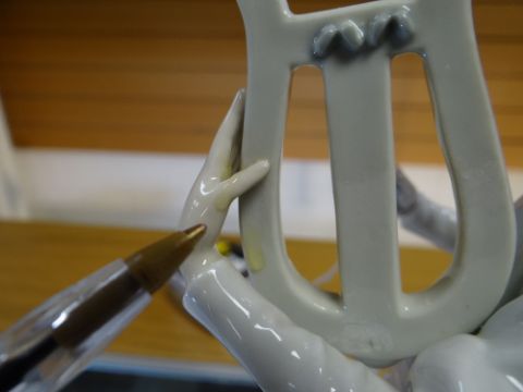 TWO LLADRO PORCELAIN MODELS both musicians, one playing a lyre, the other with a tambourinebroken finger on the tambourine figure