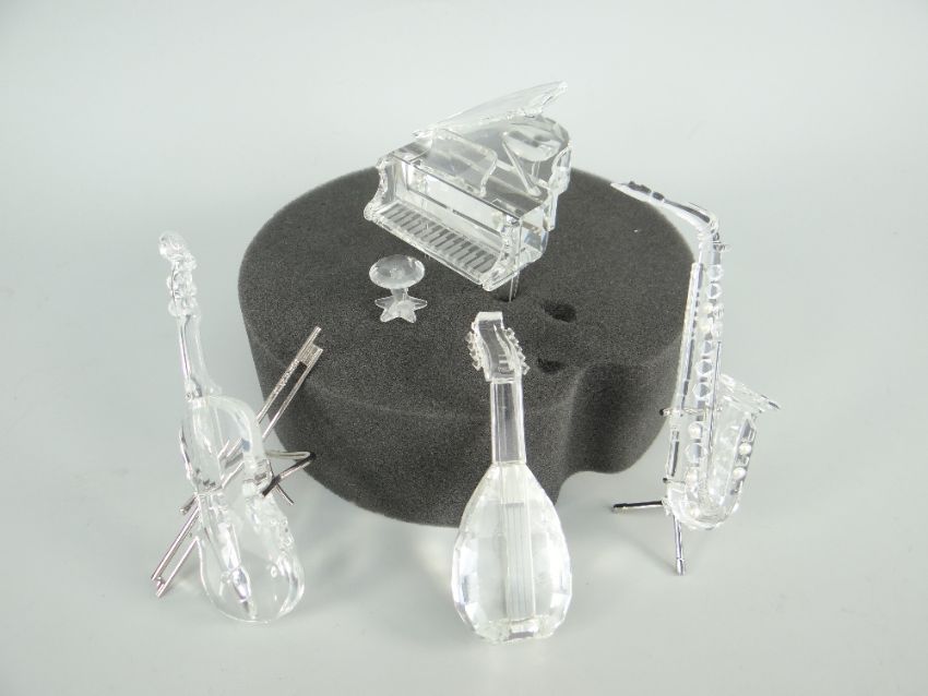 FOUR BOXED SWAROVSKI CRYSTAL MUSICAL INSTRUMENT ORNAMENTS