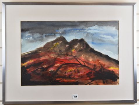 DAVID HUGHES mixed media - view of mountains entitled verso `Garn Fawr`, signed, 37 x 55cms
