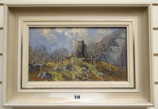 CHARLES WYATT WARREN oil on board - entitled 'Dolbadarn Castle', signed, 19 x 33cms