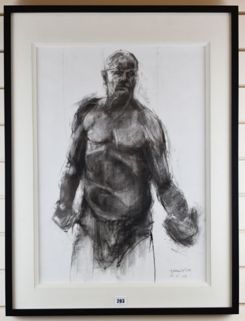 RICHARD ALLIN WILLS black pastel - standing figure, entitled 'Foundry Man', signed and dated '09, 63 x 45cms
