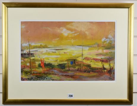 RAY HOWARD-JONES mixed media - entitled 'Llanrhidian & Loughor Estuary', signed and dated 1972, 31 x 48cms