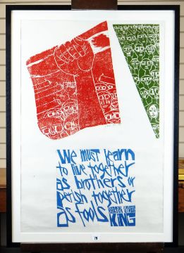 PAUL PETER PIECH limited edition (9/50) three colour print - Civil Rights Movement inspired graphics with quotation from Martin Luther King 'We must learn to live together as brothers or perish together as fools', signed and with artist's blind-stamp, 81 x 54cms