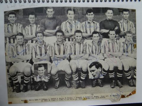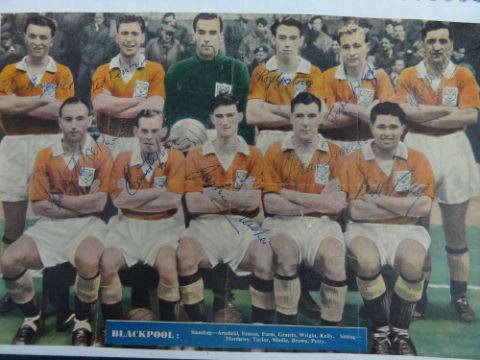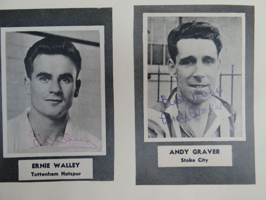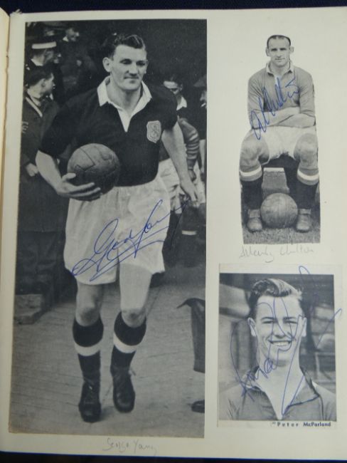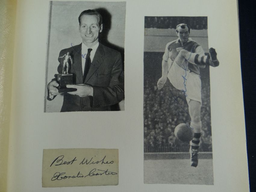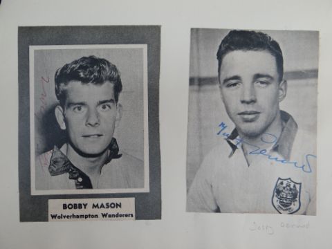AN EXTENSIVE & SUPERB COLLECTION OF HISTORICAL ASSOCIATION FOOTBALL / SOCCER AUTOGRAPHS kept in seven folders and signed on various medium including cigarette cards, photos, extracts of periodicals, note-paper, postcards etc, some signatures in teams and others individual. Near complete list has been produced by the vendor and is available by email, this includes the medium on which the autographs appear. Notable players / figures in our opinion include George Best, Danny Blanchflower, Matt Busby, John Charles, Jack Charlton, Brian Clough, Tommy Docherty, Duncan Edwards, Tom Finney, Jimmy Greaves, Jimmy Hill, Dennis Law, Billy Liddell, Nat Lofthouse, Stanley Matthews, Alf Ramsey, Don Revie, Len Shackleton, Bert Trautman. Notable teams include Blackpool with Matthews and Armfield, late '50s PNE incl. Docherty and Finney, 50s Ipswich incl. Alf Ramsey, England vs N Ireland 6/10/56 incl. Stanley Matthews (trainer), Billy Wright and Duncan Edwards, various European teams and International teams