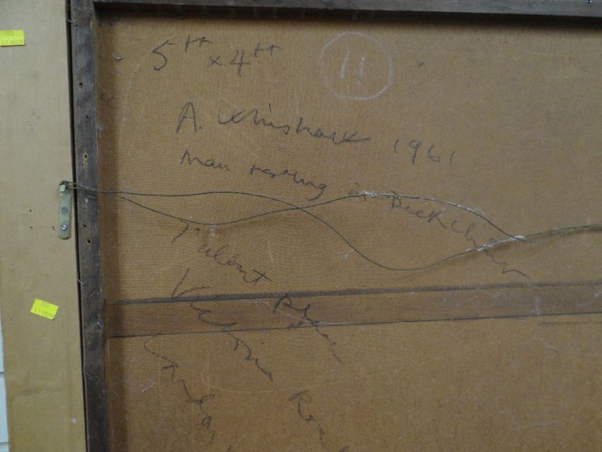 ANTHONY WHISHAW (British, b.1930) oil on board - life drawing in brown, entitled verso 'Man Resting in Deck Chair', dated 1961, artist's residential address and signed verso, 119 x 151cms