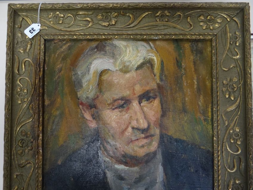 ATTRIBUTED TO STEFAN LUCHIAN (Romanian 1868 - 1916) oil on canvas - head and shoulders portrait of a grey-haired man (possibly later life self-portrait), signed, 48 x 38cms