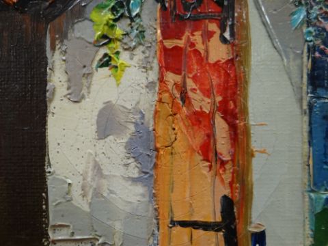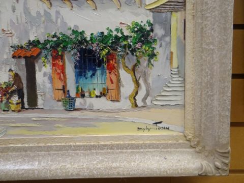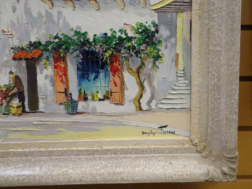 CECIL D'OYLY JOHN oil on canvas - French Riviera town with figures, signed, 41 x 56cms *This lot may qualify for Artist Resale Rights. For further information, please visit http://www.dacs.orgCondition Report: old repair visible at back41 x 56cms withoutframe just image size56 x 71cms with frame
