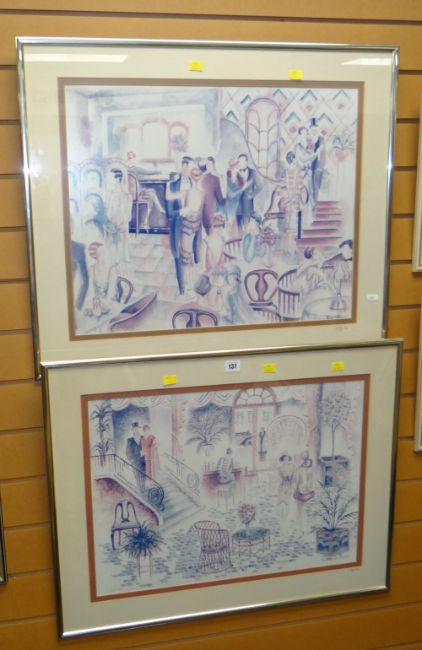 TWO FRAMED LIMITED EDITION PRINTS BY M.GLYN, 62/100 and 52/100, depicting stylized 1930's art deco style cafe/bar scenes
